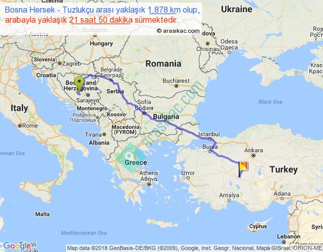 Bosna Hersek - Tuzlukçu arası yaklaşık olarak 90 km/h ile yukarıda belirtilen sürede olup, iki yerin kuş uçuşu uzaklığı (mesafesi) 1305'dir. Eğer belirtilen yerler arasında uçak seferi var ise bu süre uçakla 2 saat 00 dakika'ya kadar düşebilir. Yolculuk otobüsle 1 gün 4 saat sürmektedir.