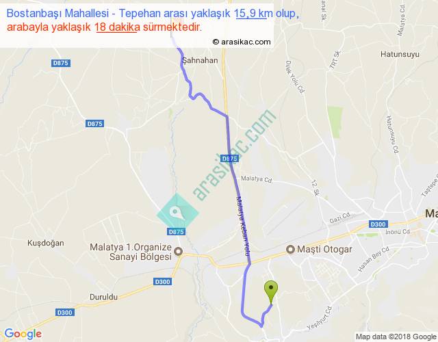 Bostanbaşı Mahallesi - Tepehan arası yaklaşık olarak 90 km/h ile yukarıda belirtilen sürede olup, iki yerin kuş uçuşu uzaklığı (mesafesi) 12'dir. Yolculuk otobüsle 23 dakika sürmektedir.