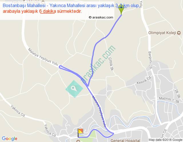 Bostanbaşı Mahallesi - Yakınca Mahallesi arası yaklaşık olarak 90 km/h ile yukarıda belirtilen sürede olup, iki yerin kuş uçuşu uzaklığı (mesafesi) 2'dir. Yolculuk otobüsle 7 dakika sürmektedir.