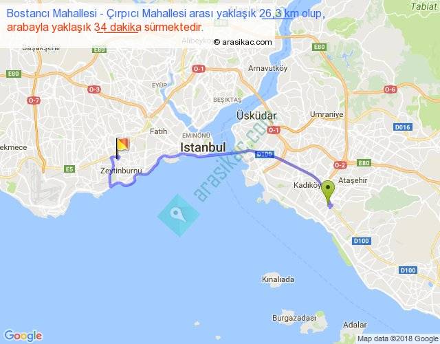 Bostancı Mahallesi - Çırpıcı Mahallesi arası yaklaşık olarak 90 km/h ile yukarıda belirtilen sürede olup, iki yerin kuş uçuşu uzaklığı (mesafesi) 18'dir. Yolculuk otobüsle 44 dakika sürmektedir.