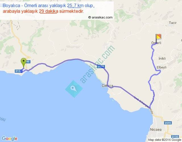 Boyalıca - Ömerli arası yaklaşık olarak 90 km/h ile yukarıda belirtilen sürede olup, iki yerin kuş uçuşu uzaklığı (mesafesi) 14'dir. Yolculuk otobüsle 37 dakika sürmektedir.