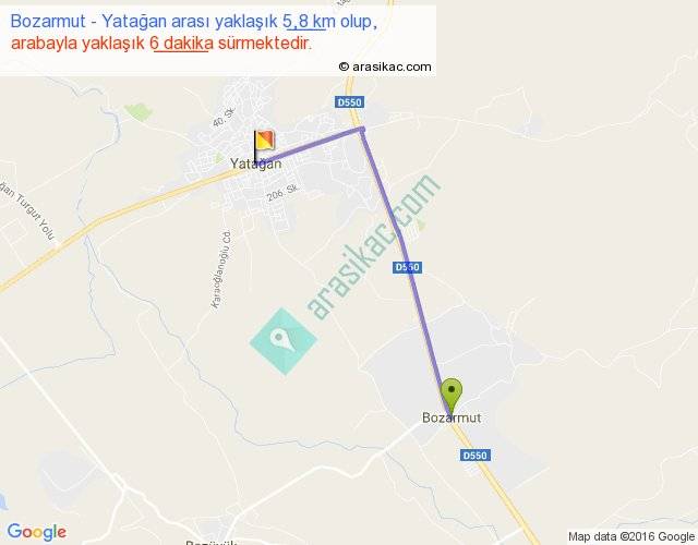 Bozarmut - Yatağan arası yaklaşık olarak 90 km/h ile yukarıda belirtilen sürede olup, iki yerin kuş uçuşu uzaklığı (mesafesi) 4'dir. Yolculuk otobüsle 7 dakika sürmektedir.