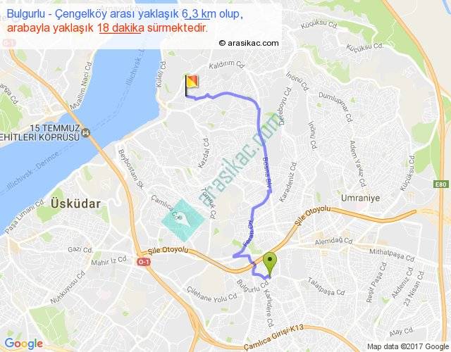 Bulgurlu - Çengelköy arası yaklaşık olarak 90 km/h ile yukarıda belirtilen sürede olup, iki yerin kuş uçuşu uzaklığı (mesafesi) 4'dir. Yolculuk otobüsle 23 dakika sürmektedir.