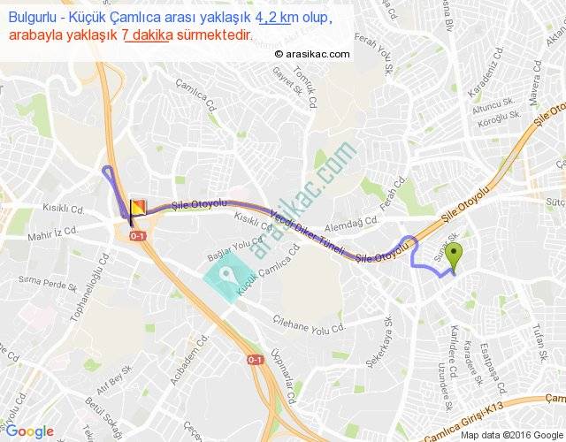 Bulgurlu - Küçük Çamlıca arası yaklaşık olarak 90 km/h ile yukarıda belirtilen sürede olup, iki yerin kuş uçuşu uzaklığı (mesafesi) 3'dir. Yolculuk otobüsle 9 dakika sürmektedir.