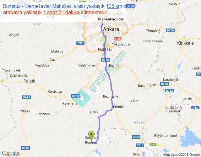 Bumsuz - Demetevler Mahallesi arası yaklaşık olarak 90 km/h ile yukarıda belirtilen sürede olup, iki yerin kuş uçuşu uzaklığı (mesafesi) 88'dir. Yolculuk otobüsle 1 saat 45 dakika sürmektedir.