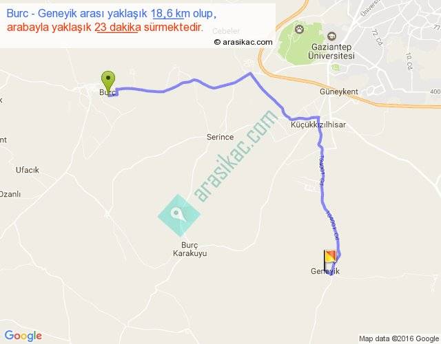 Eğer Burc Geneyik arası ne kadar yakar (benzin/mazot) diyorsanız, kilometrede 3 ₺ yakan bir aracınız var ise 54, km'de 4 ₺ yakan bir aracınız var ise 72, km'de 5 ₺ yakan bir aracınız var ise 90 ile bu yolculuğu tamamlayabilirsiniz.