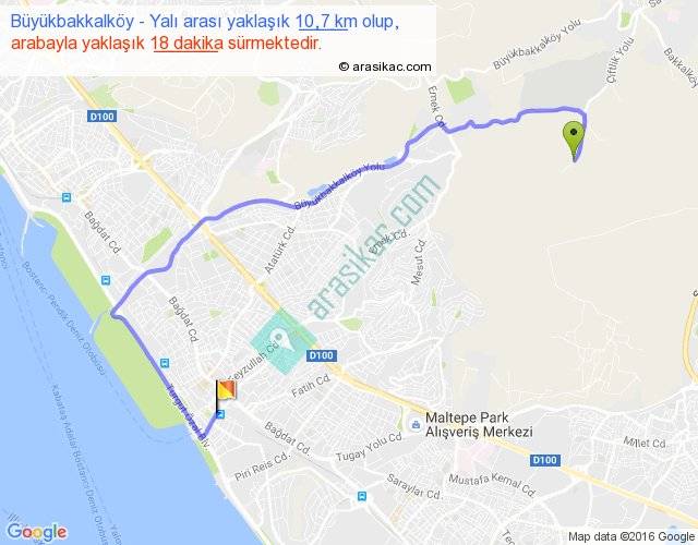 Büyükbakkalköy - Yalı arası yaklaşık olarak 90 km/h ile yukarıda belirtilen sürede olup, iki yerin kuş uçuşu uzaklığı (mesafesi) 6'dir. Yolculuk otobüsle 23 dakika sürmektedir.