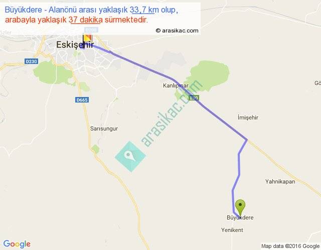 Büyükdere - Alanönü arası yaklaşık olarak 90 km/h ile yukarıda belirtilen sürede olup, iki yerin kuş uçuşu uzaklığı (mesafesi) 27'dir. Yolculuk otobüsle 48 dakika sürmektedir.