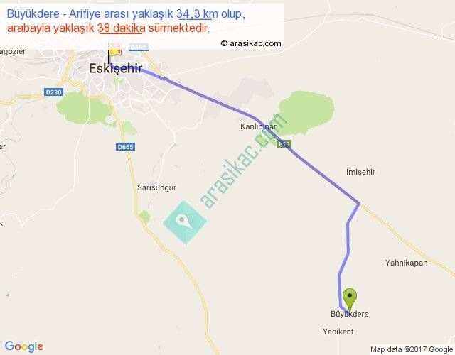 Büyükdere - Arifiye arası yaklaşık olarak 90 km/h ile yukarıda belirtilen sürede olup, iki yerin kuş uçuşu uzaklığı (mesafesi) 28'dir. Yolculuk otobüsle 49 dakika sürmektedir.