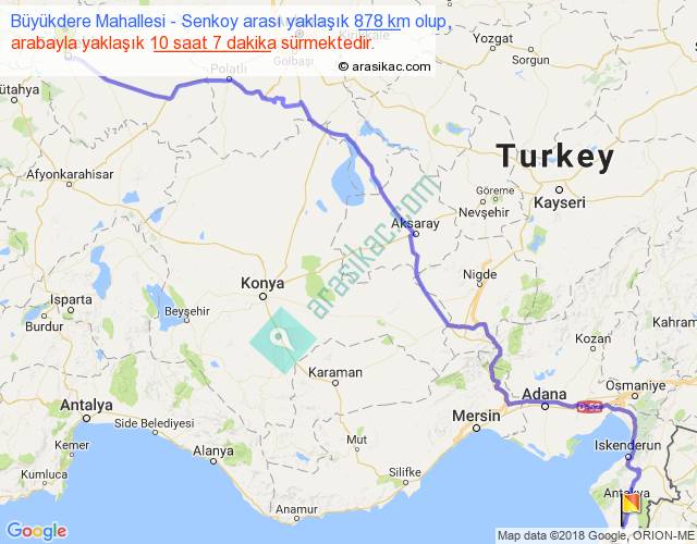 Büyükdere Mahallesi - Senkoy arası yaklaşık olarak 90 km/h ile yukarıda belirtilen sürede olup, iki yerin kuş uçuşu uzaklığı (mesafesi) 641'dir. Eğer belirtilen yerler arasında uçak seferi var ise bu süre uçakla 59 dakika'ya kadar düşebilir. Yolculuk otobüsle 13 saat 9 dakika sürmektedir.