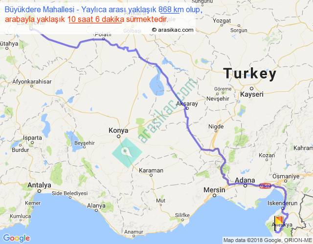 Büyükdere Mahallesi - Yaylıca arası yaklaşık olarak 90 km/h ile yukarıda belirtilen sürede olup, iki yerin kuş uçuşu uzaklığı (mesafesi) 622'dir. Eğer belirtilen yerler arasında uçak seferi var ise bu süre uçakla 57 dakika'ya kadar düşebilir. Yolculuk otobüsle 13 saat 7 dakika sürmektedir.