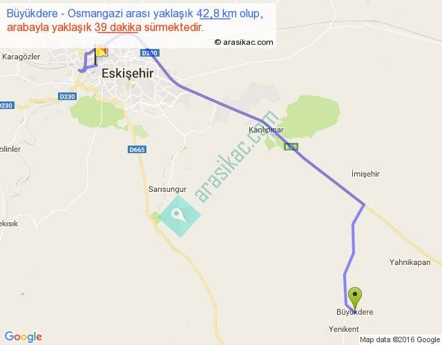 Büyükdere - Osmangazi arası yaklaşık olarak 90 km/h ile yukarıda belirtilen sürede olup, iki yerin kuş uçuşu uzaklığı (mesafesi) 30'dir. Yolculuk otobüsle 50 dakika sürmektedir.