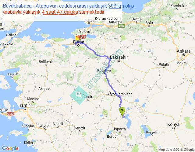 Büyükkabaca - Atabulvarı caddesi arası yaklaşık olarak 90 km/h ile yukarıda belirtilen sürede olup, iki yerin kuş uçuşu uzaklığı (mesafesi) 269'dir. Eğer belirtilen yerler arasında uçak seferi var ise bu süre uçakla 24 dakika'ya kadar düşebilir. Yolculuk otobüsle 6 saat 13 dakika sürmektedir.