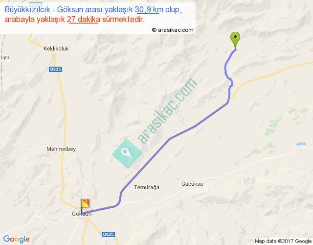 Büyükkızılcık - Göksun arası yaklaşık olarak 90 km/h ile yukarıda belirtilen sürede olup, iki yerin kuş uçuşu uzaklığı (mesafesi) 27'dir. Yolculuk otobüsle 35 dakika sürmektedir.