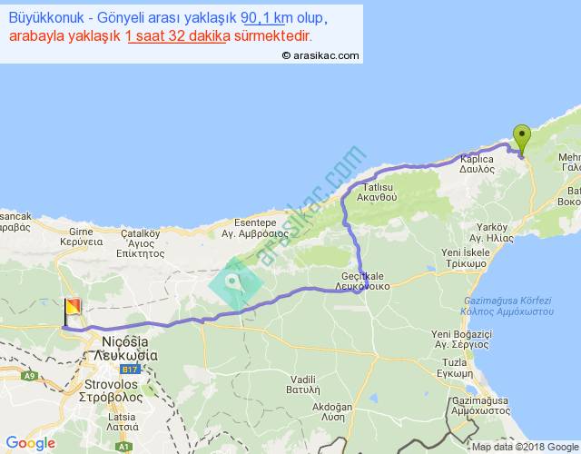 Eğer Büyükkonuk Gönyeli arası ne kadar yakar (benzin/mazot) diyorsanız, kilometrede 3 ₺ yakan bir aracınız var ise 270, km'de 4 ₺ yakan bir aracınız var ise 360, km'de 5 ₺ yakan bir aracınız var ise 450 ile bu yolculuğu tamamlayabilirsiniz.
