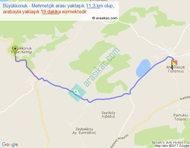 Büyükkonuk - Mehmetçik arası yaklaşık olarak 90 km/h ile yukarıda belirtilen sürede olup, iki yerin kuş uçuşu uzaklığı (mesafesi) 8'dir. Yolculuk otobüsle 24 dakika sürmektedir.