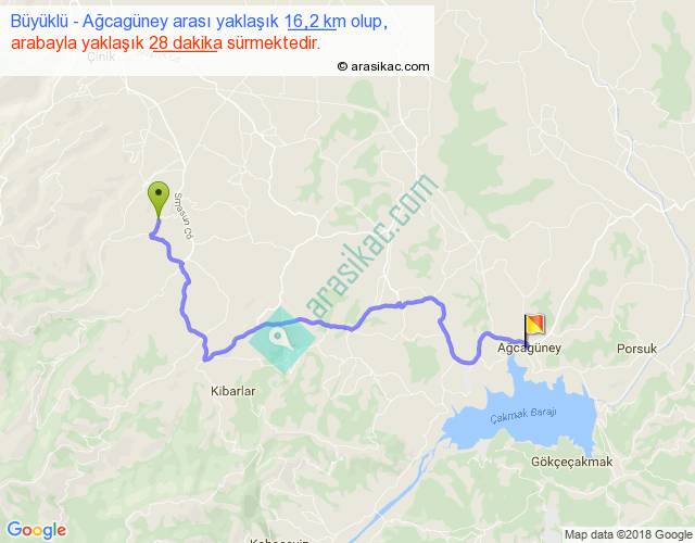Büyüklü - Ağcagüney arası yaklaşık olarak 90 km/h ile yukarıda belirtilen sürede olup, iki yerin kuş uçuşu uzaklığı (mesafesi) 10'dir. Yolculuk otobüsle 36 dakika sürmektedir.