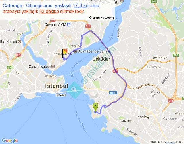 Eğer Caferağa Cihangir arası ne kadar yakar (benzin/mazot) diyorsanız, kilometrede 3 ₺ yakan bir aracınız var ise 51, km'de 4 ₺ yakan bir aracınız var ise 68, km'de 5 ₺ yakan bir aracınız var ise 85 ile bu yolculuğu tamamlayabilirsiniz.