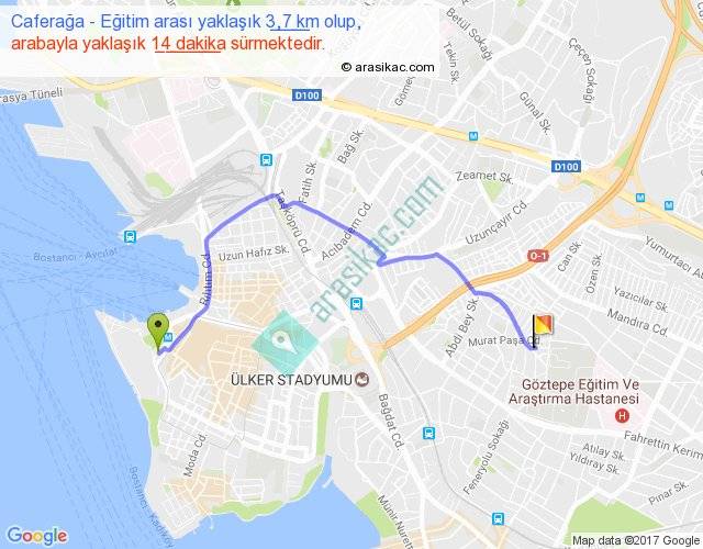 Eğer Caferağa Eğitim arası ne kadar yakar (benzin/mazot) diyorsanız, kilometrede 3 ₺ yakan bir aracınız var ise 9, km'de 4 ₺ yakan bir aracınız var ise 12, km'de 5 ₺ yakan bir aracınız var ise 15 ile bu yolculuğu tamamlayabilirsiniz.