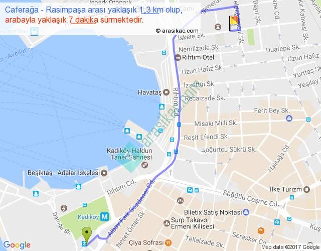Eğer Caferağa Rasimpaşa arası ne kadar yakar (benzin/mazot) diyorsanız, kilometrede 3 ₺ yakan bir aracınız var ise 3, km'de 4 ₺ yakan bir aracınız var ise 4, km'de 5 ₺ yakan bir aracınız var ise 5 ile bu yolculuğu tamamlayabilirsiniz.