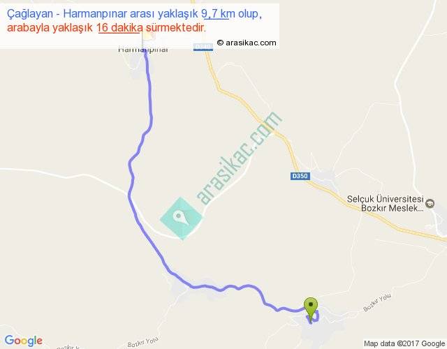 Çağlayan - Harmanpınar arası yaklaşık olarak 90 km/h ile yukarıda belirtilen sürede olup, iki yerin kuş uçuşu uzaklığı (mesafesi) 7'dir. Yolculuk otobüsle 20 dakika sürmektedir.