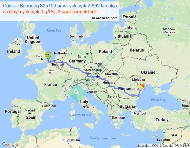 Calais - Babadağ 825100 arası yaklaşık olarak 90 km/h ile yukarıda belirtilen sürede olup, iki yerin kuş uçuşu uzaklığı (mesafesi) 2086'dir. Eğer belirtilen yerler arasında uçak seferi var ise bu süre uçakla 3 saat 12 dakika'ya kadar düşebilir. Yolculuk otobüsle 1 gün 11 saat sürmektedir.