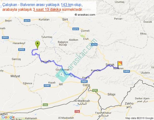 Çalışkan - Balveren arası yaklaşık olarak 90 km/h ile yukarıda belirtilen sürede olup, iki yerin kuş uçuşu uzaklığı (mesafesi) 83'dir. Yolculuk otobüsle 4 saat 10 dakika sürmektedir.