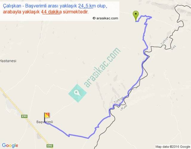 Çalışkan - Başverimli arası yaklaşık olarak 90 km/h ile yukarıda belirtilen sürede olup, iki yerin kuş uçuşu uzaklığı (mesafesi) 14'dir. Yolculuk otobüsle 57 dakika sürmektedir.