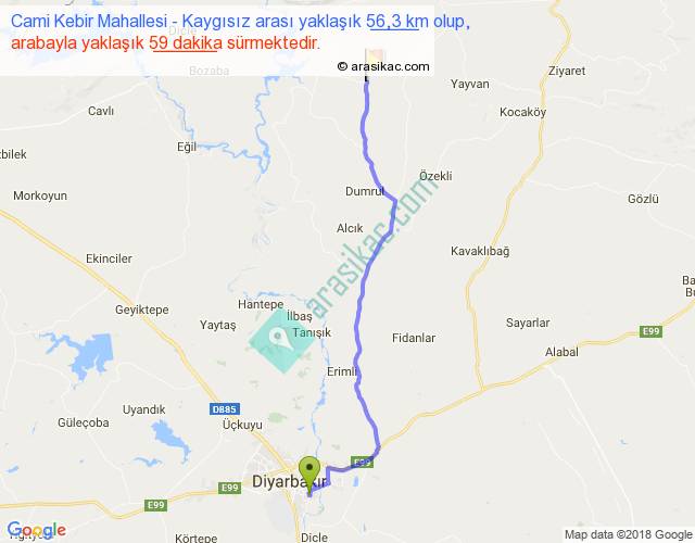 Cami Kebir Mahallesi - Kaygısız arası yaklaşık olarak 90 km/h ile yukarıda belirtilen sürede olup, iki yerin kuş uçuşu uzaklığı (mesafesi) 46'dir. Yolculuk otobüsle 1 saat 16 dakika sürmektedir.