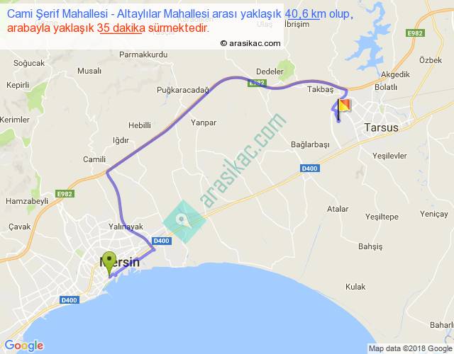 Cami Şerif Mahallesi - Altaylılar Mahallesi arası yaklaşık olarak 90 km/h ile yukarıda belirtilen sürede olup, iki yerin kuş uçuşu uzaklığı (mesafesi) 24'dir. Yolculuk otobüsle 45 dakika sürmektedir.
