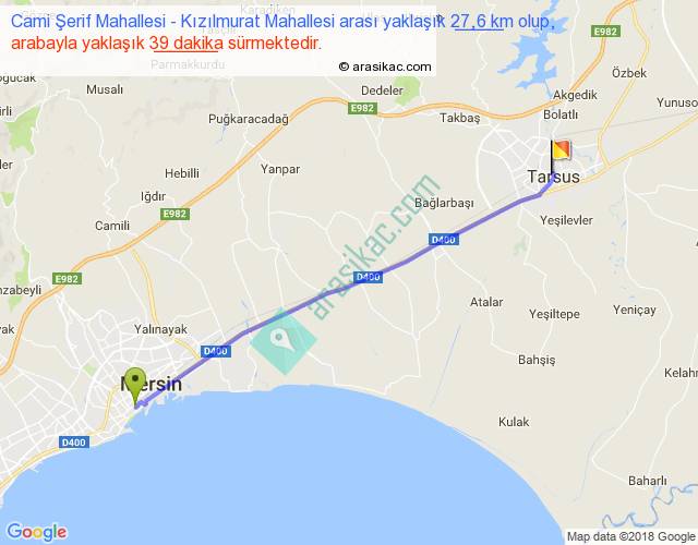 Cami Şerif Mahallesi - Kızılmurat Mahallesi arası yaklaşık olarak 90 km/h ile yukarıda belirtilen sürede olup, iki yerin kuş uçuşu uzaklığı (mesafesi) 27'dir. Yolculuk otobüsle 50 dakika sürmektedir.