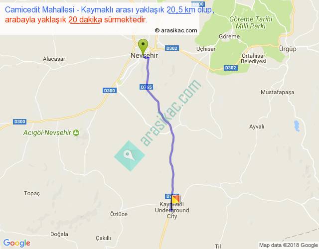 Camicedit Mahallesi - Kaymaklı arası yaklaşık olarak 90 km/h ile yukarıda belirtilen sürede olup, iki yerin kuş uçuşu uzaklığı (mesafesi) 19'dir. Yolculuk otobüsle 26 dakika sürmektedir.