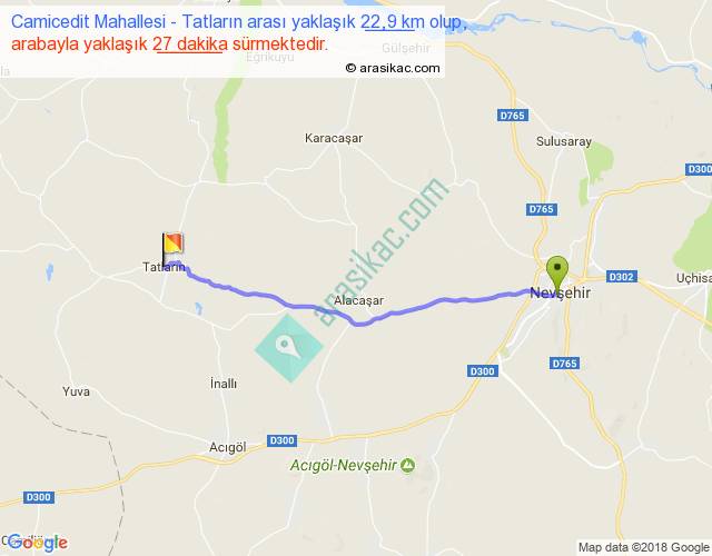 Camicedit Mahallesi - Tatların arası yaklaşık olarak 90 km/h ile yukarıda belirtilen sürede olup, iki yerin kuş uçuşu uzaklığı (mesafesi) 21'dir. Yolculuk otobüsle 35 dakika sürmektedir.