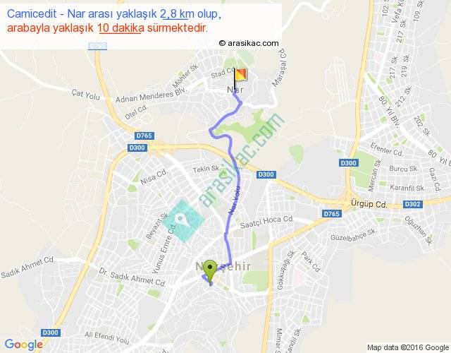 Camicedit - Nar arası yaklaşık olarak 90 km/h ile yukarıda belirtilen sürede olup, iki yerin kuş uçuşu uzaklığı (mesafesi) 2'dir. Yolculuk otobüsle 13 dakika sürmektedir.