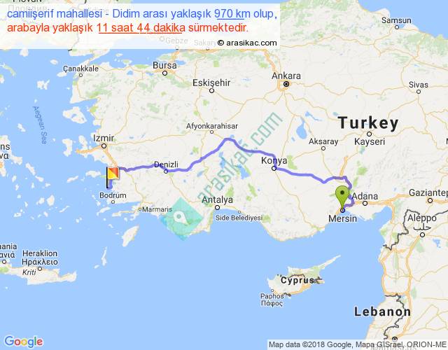 camiişerif mahallesi - Didim arası yaklaşık olarak 90 km/h ile yukarıda belirtilen sürede olup, iki yerin kuş uçuşu uzaklığı (mesafesi) 653'dir. Eğer belirtilen yerler arasında uçak seferi var ise bu süre uçakla 1 saat 00 dakika'ya kadar düşebilir. Yolculuk otobüsle 15 saat 15 dakika sürmektedir.
