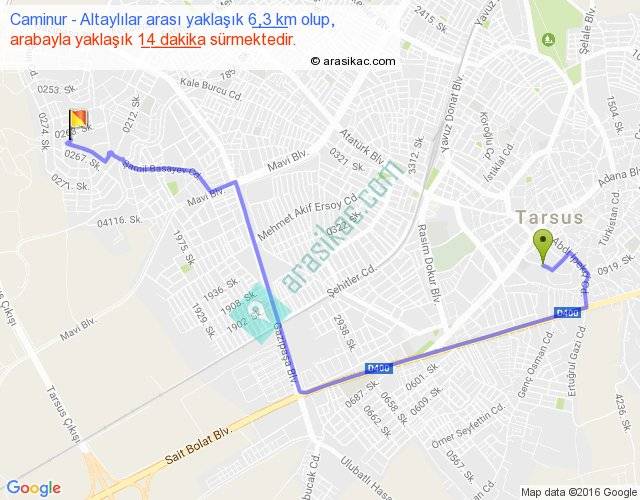 Caminur - Altaylılar arası yaklaşık olarak 90 km/h ile yukarıda belirtilen sürede olup, iki yerin kuş uçuşu uzaklığı (mesafesi) 4'dir. Yolculuk otobüsle 18 dakika sürmektedir.