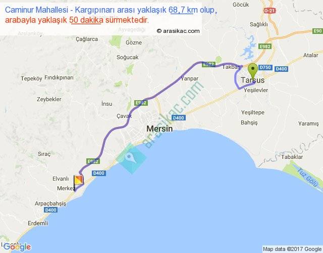 Caminur Mahallesi - Kargıpınarı arası yaklaşık olarak 90 km/h ile yukarıda belirtilen sürede olup, iki yerin kuş uçuşu uzaklığı (mesafesi) 50'dir. Yolculuk otobüsle 1 saat 5 dakika sürmektedir.