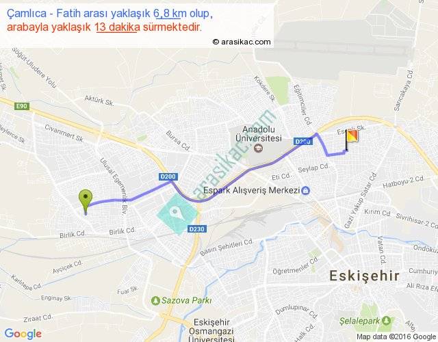 Çamlıca - Fatih arası yaklaşık olarak 90 km/h ile yukarıda belirtilen sürede olup, iki yerin kuş uçuşu uzaklığı (mesafesi) 6'dir. Yolculuk otobüsle 16 dakika sürmektedir.