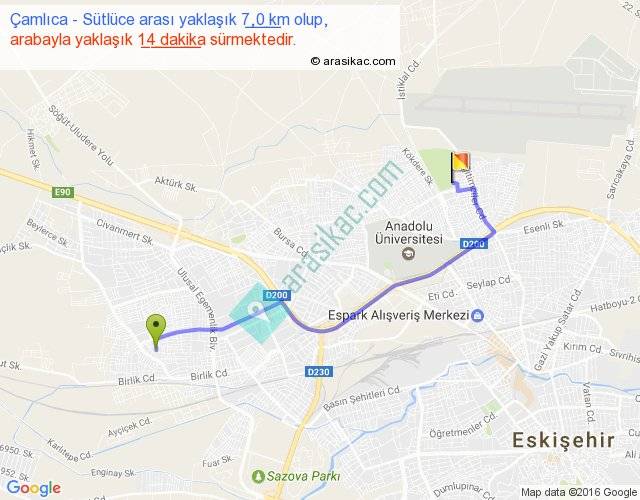 Çamlıca - Sütlüce arası yaklaşık olarak 90 km/h ile yukarıda belirtilen sürede olup, iki yerin kuş uçuşu uzaklığı (mesafesi) 5'dir. Yolculuk otobüsle 18 dakika sürmektedir.