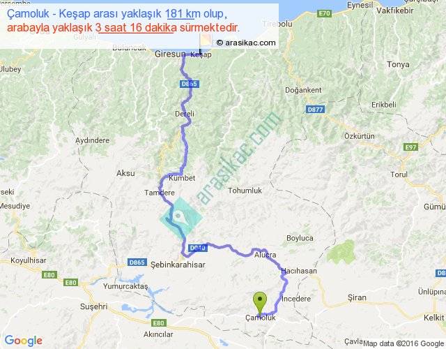 Eğer Çamoluk Keşap arası ne kadar yakar (benzin/mazot) diyorsanız, kilometrede 3 ₺ yakan bir aracınız var ise 543, km'de 4 ₺ yakan bir aracınız var ise 724, km'de 5 ₺ yakan bir aracınız var ise 905 ile bu yolculuğu tamamlayabilirsiniz.