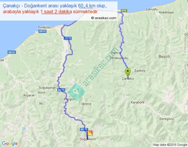 Eğer Çanakçı Doğankent arası ne kadar yakar (benzin/mazot) diyorsanız, kilometrede 3 ₺ yakan bir aracınız var ise 180, km'de 4 ₺ yakan bir aracınız var ise 240, km'de 5 ₺ yakan bir aracınız var ise 300 ile bu yolculuğu tamamlayabilirsiniz.