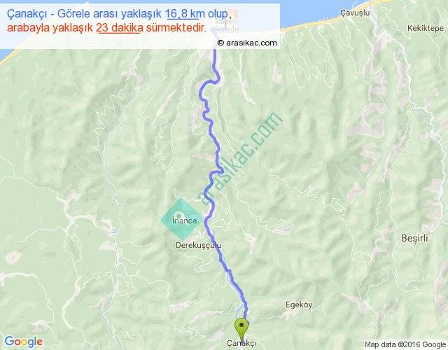 Çanakçı - Görele arası yaklaşık olarak 90 km/h ile yukarıda belirtilen sürede olup, iki yerin kuş uçuşu uzaklığı (mesafesi) 13'dir. Yolculuk otobüsle 29 dakika sürmektedir.