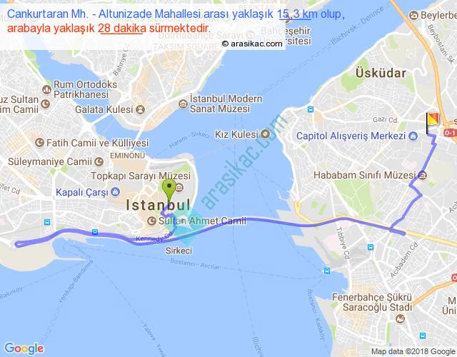 Cankurtaran Mh. - Altunizade Mahallesi arası detaylı bilgi