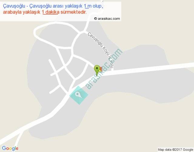 Çavuşoğlu - Çavuşoğlu arası yaklaşık olarak 90 km/h ile yukarıda belirtilen sürede olup, iki yerin kuş uçuşu uzaklığı (mesafesi) 0'dir. Yolculuk otobüsle 1 dakika sürmektedir.