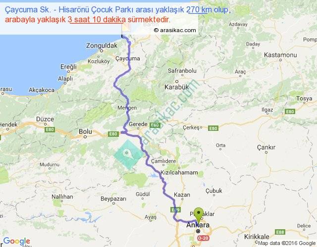 Çaycuma Sk. - Hisarönü Çocuk Parkı arası detaylı bilgi