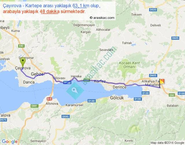 Eğer Çayırova Kartepe arası ne kadar yakar (benzin/mazot) diyorsanız, kilometrede 3 ₺ yakan bir aracınız var ise 189, km'de 4 ₺ yakan bir aracınız var ise 252, km'de 5 ₺ yakan bir aracınız var ise 315 ile bu yolculuğu tamamlayabilirsiniz.