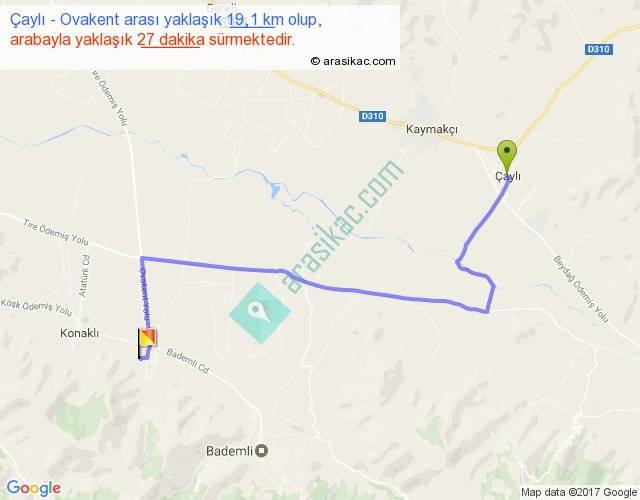 Çaylı - Ovakent arası yaklaşık olarak 90 km/h ile yukarıda belirtilen sürede olup, iki yerin kuş uçuşu uzaklığı (mesafesi) 12'dir. Yolculuk otobüsle 35 dakika sürmektedir.