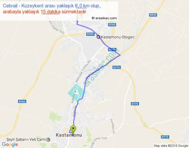 Cebrail - Kuzeykent arası yaklaşık olarak 90 km/h ile yukarıda belirtilen sürede olup, iki yerin kuş uçuşu uzaklığı (mesafesi) 5'dir. Yolculuk otobüsle 19 dakika sürmektedir.