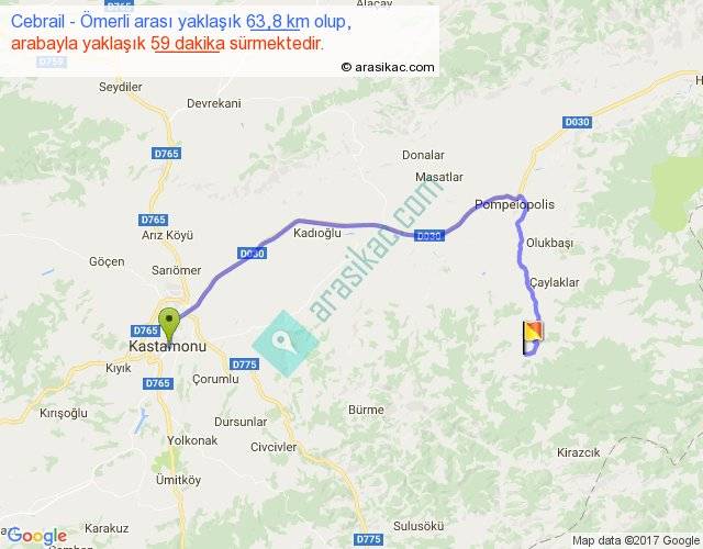 Cebrail - Ömerli arası yaklaşık olarak 90 km/h ile yukarıda belirtilen sürede olup, iki yerin kuş uçuşu uzaklığı (mesafesi) 37'dir. Yolculuk otobüsle 1 saat 16 dakika sürmektedir.