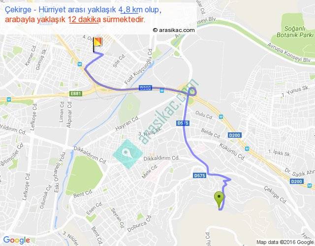 Çekirge - Hürriyet arası yaklaşık olarak 90 km/h ile yukarıda belirtilen sürede olup, iki yerin kuş uçuşu uzaklığı (mesafesi) 3'dir. Yolculuk otobüsle 15 dakika sürmektedir.